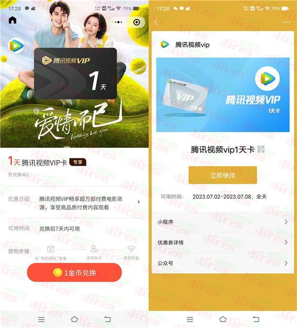 小编提示:复制下面红色文字到微信点开,部分用户可以用1个金币兑换1天腾讯视频会员,可以充到QQ号上