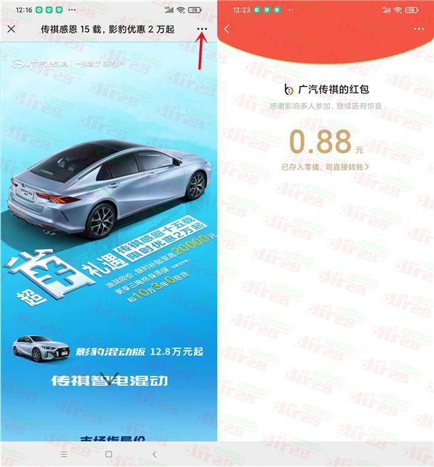 广汽传祺微信新一期分享预约领随机微信红包 亲测中0.88元