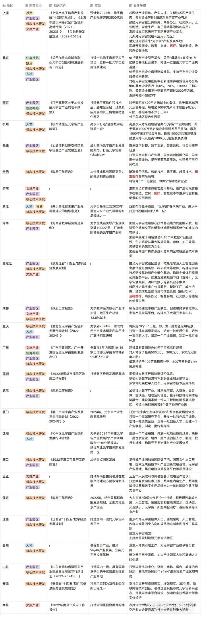长三角地区的步伐趋于同步,各地政策已明确出台支持元界的文件。