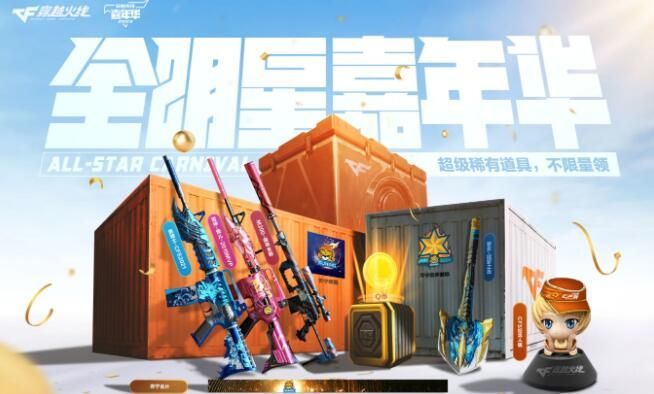 CF全明星嘉年华活动,参与奖励M200-萌杀、御·裁决-新人王绿豆、SN击杀图标、猫猫手套、雷神-宠儿-2019MVP皮肤、M4A1-QQ会员、大咖收藏名片、Barrett-战龙、柯尔特-大黄蜂、柯尔特-玫瑰、100QB等