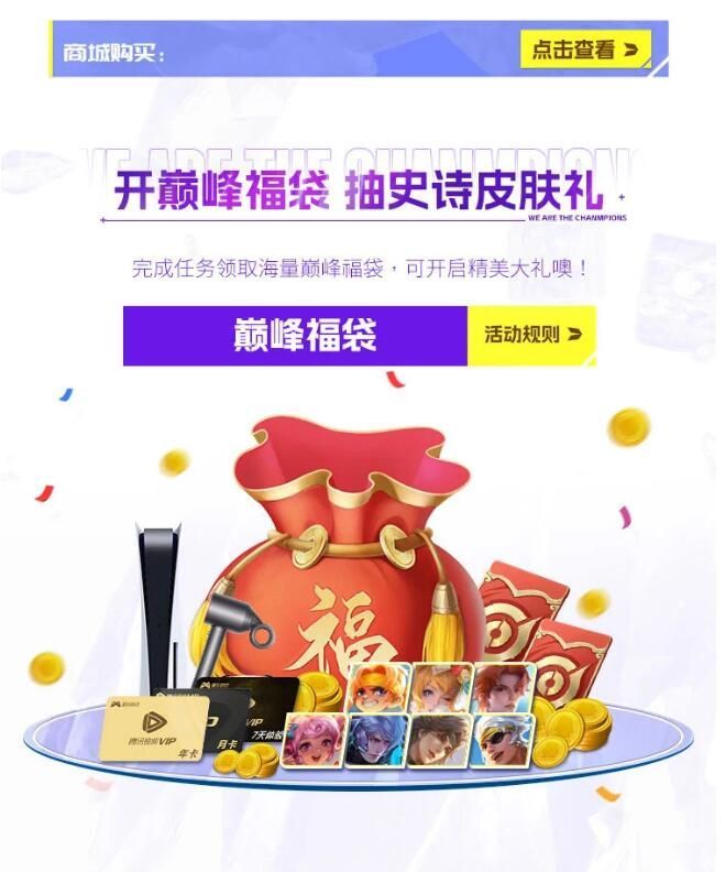 王者荣耀开巅峰福袋抽QB 腾讯视频 皮肤等