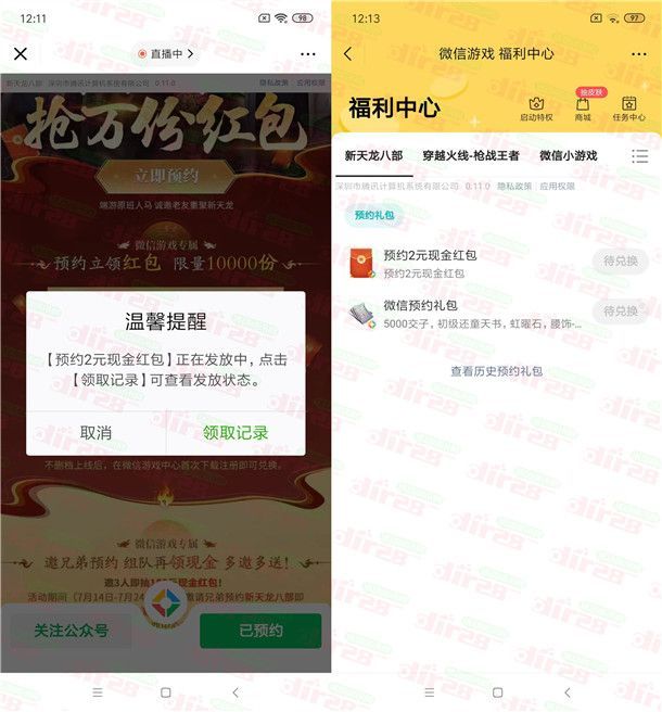 新天龙八部预约领2元微信红包!手游上线后可兑换领取