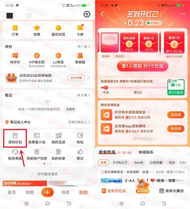 小编提示:下载打开大众点评APP,在【我的】页面点【签到红包】进去,连续签到3天领1元微信红包