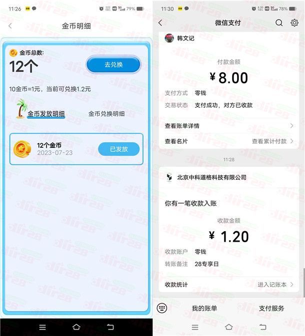 3、每10个金币=1元,中到金币可以点【金币明细】进去兑换成微信红包,小编测试中到12个金币,兑换了1.2元微信红包