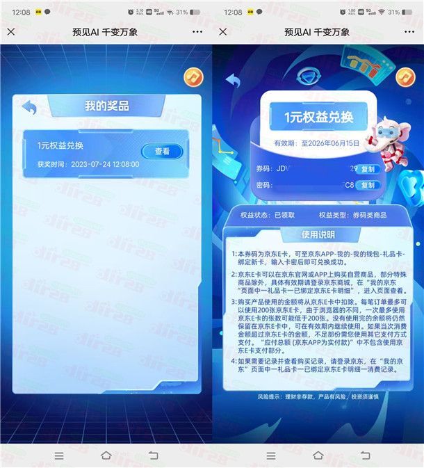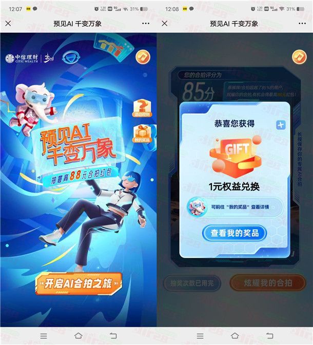 中信理财小暖象预见AI千变万象抽1-88元京东卡 亲测中1元