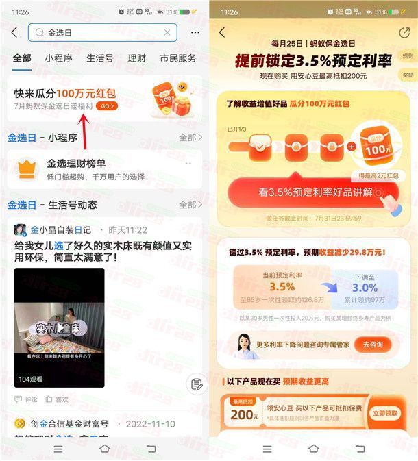 支付宝金选日活动瓜分100万支付宝消费红包!8月1日瓜分
