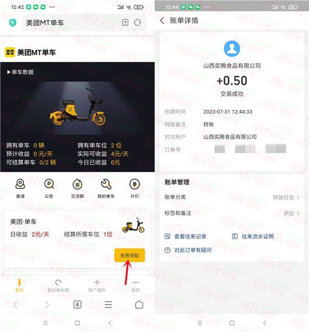 美团MT单车是一个新出的骗子平台(名字不用在意,只是骗子随便取得),我们只要白拿骗子0.5元就行,参与方式跟之前类似的活动一样,通过打开微信进去先进去授权登录一下,再选择从手机浏览器打开网页版,在首页直接领取2元现金红包,然后就可以绑定支付宝提现了,提现秒到0.5元,只能提现0.5元,撸完就可以不用再去玩了。