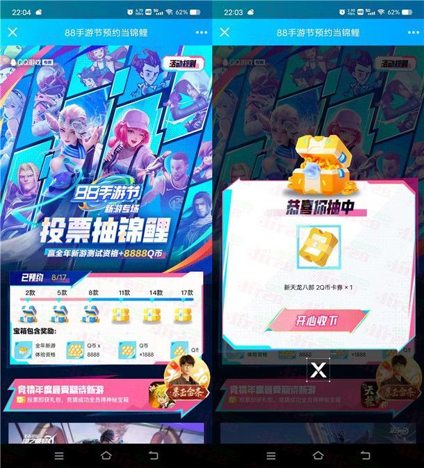 腾讯88手游节预约开宝箱抽1-8888个Q币卡券 亲测中2Q币
