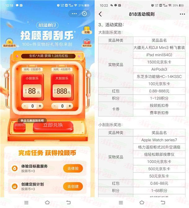 天天基金18添财日抽0.66-888元现金红包、京东卡 非必中