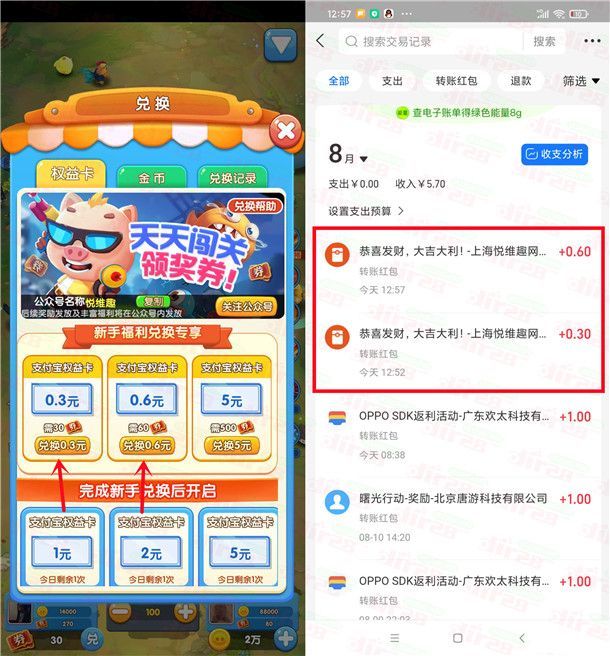 一个简单的小游戏领红包活动,需要安卓手机才可以参加,通过下载打开猪猪爱射击app客户端,用手机号码注册登录后,随便点几下游戏就可以领到0.3元支付宝现金秒到,然后再继续玩2分钟左右,还可以再领到0.6元现金,同样也是秒到支付宝,只有这个0.9元是最简单的,后续的可能会需要VIP才可以提现。