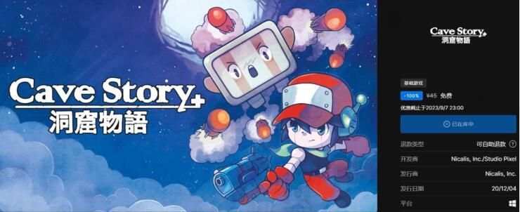 【Epic喜+1】免费领取电脑游戏《洞窟物语+》,款独立制作游戏,领取时间截止到9月7日23点。