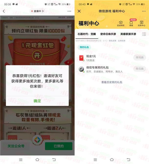 石器时代微信预约抽1-188元微信红包卡券 手游上线可兑换