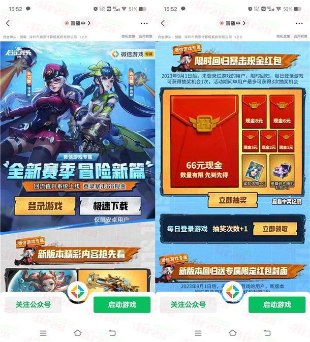 合金弹头全新赛季老用户抽1-66元微信红包 每天1次机会