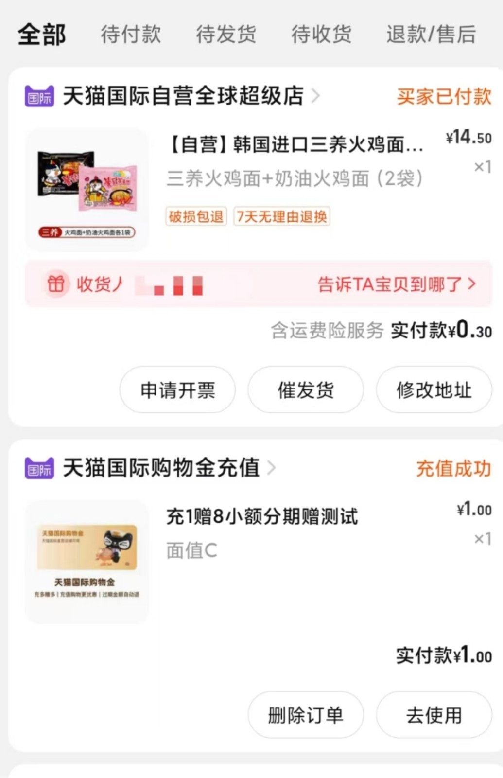 买猫超也算一笔订单(有延迟) 另外一笔订单去0撸实物就行了