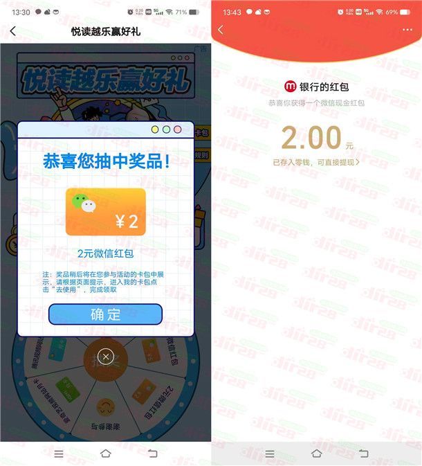 参加农行举办的悦读越乐赢好礼活动,这个活动全国所有地区都可以去,但是部分用户可能参加不了。通过打开中国农业银行APP进去活动里,跟以往类似的活动一样,每支付1.06元可以抽奖1次,每个账号每个季度可以抽6次,有机会中到1-50元微信红包,小编测试6次机会中到1元+2元红包,支付的钱也会在7个工作日原路退回,非必中。