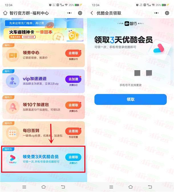参加智行举办的微信小程序免费领优酷会员活动,通过打开微信进去小程序活动里,可以直接领取到3天优酷VIP会员,领取的优酷会员秒到账,需要优酷会员的额可以去,可以作为一个临时会员使用。