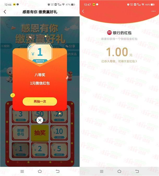 参加农行举办的感恩有你缴费赢好礼活动,通过打开中国农业银行APP进去活动里(只有部分用户才可以参加),每支付1.1元可以抽奖1次(支付的钱也会在1-3个工作日原路退回),可以抽7次,有机会中到1-5元微信红包、或者10-50元京东卡,小编测试中到1元微信红包,中到红包需要复制兑换链接到微信点开领取就会推送。