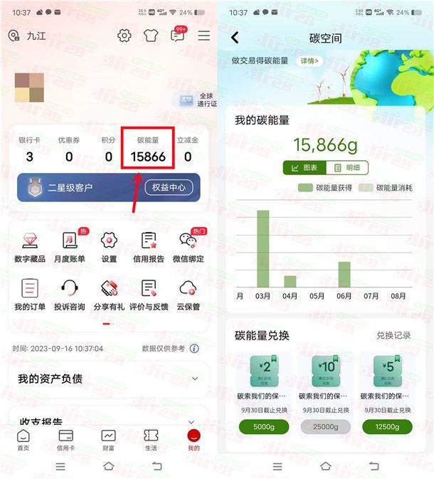 小编提示:打开中国工商银行APP,在“我的”页面点“碳能量”进去,有碳能量的可以兑换1-10元微信立减金(碳能量可以在详情里查看完成指定的任务获得),如果没有立减金兑换就参加不了