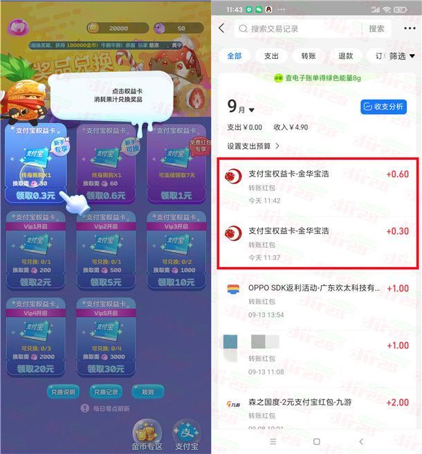 之前小编介绍过多次类似的简单几分钟小游戏领1元左右现金的活动,这是一个新活动安卓手机都可以参加,通过下载打开水果忍者闯关记app游戏,微信登录后,按照提示玩几分钟就可以领到0.3元+0.6元支付宝现金,领取的现金红包秒到支付宝余额里,领完这个0.9元就无需再去玩了,因为后续的红包都需要VIP和充钱才可以提现。