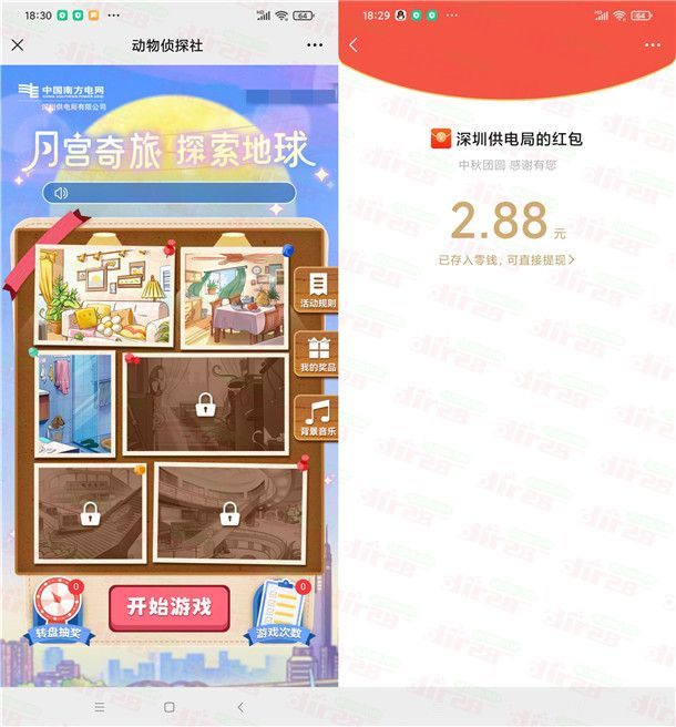 南网在线中秋月宫奇旅抽2.88-8.88元微信红包 亲测中2.88元