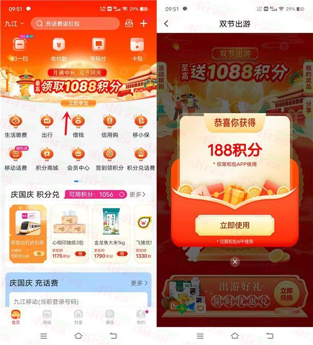 和包双节同庆8-1088个和包积分 亲测中188积分 可兑换云闪付红包