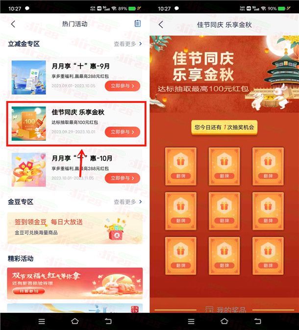 1、注册过浦发银行二类电子卡的去,打开浦发银行APP,点底部【生活】再点【热门活动】,点【佳节同庆乐享金秋】进去活动里