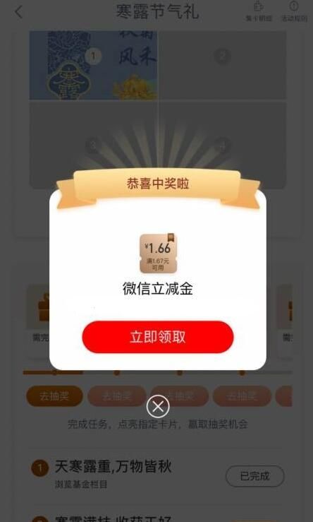 工行寒露庆典抽1.66-66元微信减免金,完成指定的4个任务即可抽5次。操作简单,与往常任务相似,欢迎大家参加。