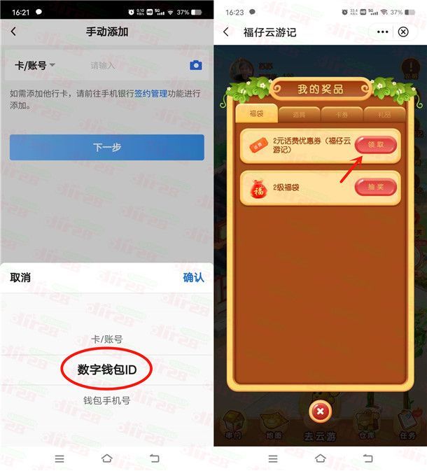 2、在中国银行APP搜索【福仔云游记】进去点击右侧【福禄开奖】进去领取2元话费券