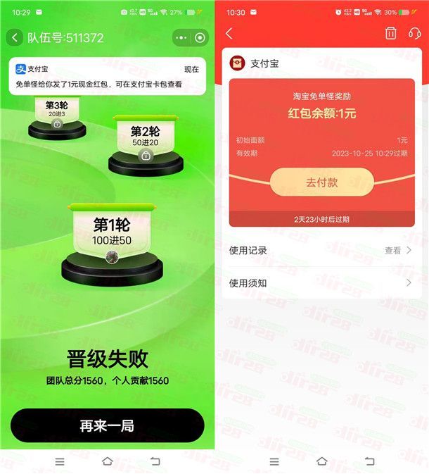 淘宝免单怪组队PK活动领1-90元支付宝红包 亲测1元秒到