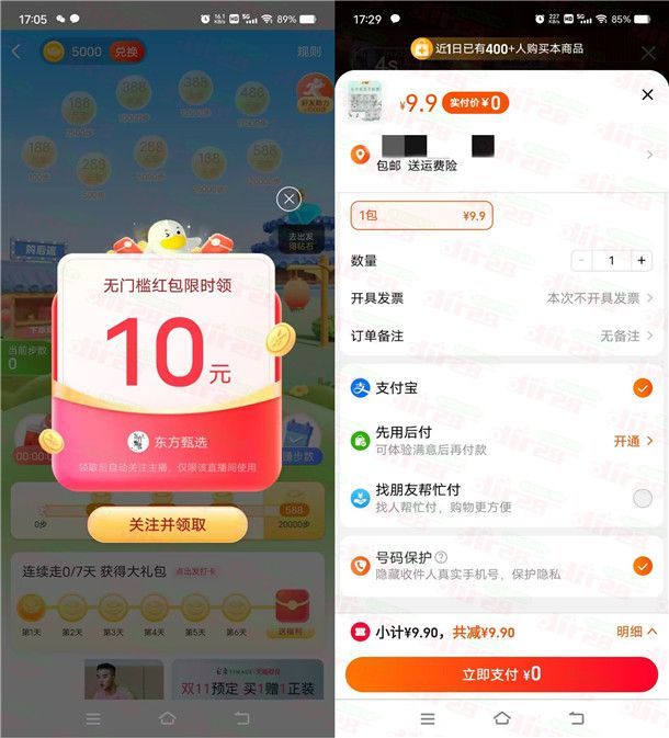 这是点淘APP东方甄选直播间的一个活动,通过下载打开点淘APP进去活动里可以领到10元东方甄选直播间无门槛红包,领到红包后可以在东方甄选直播间里购买10元以内的商品抵扣后就是0元(也可以购买大于10元的商品),如果只是想0撸实物的可以在东方甄选直播间点右下角图标搜索“纸”下单24包手帕纸,数量限量。