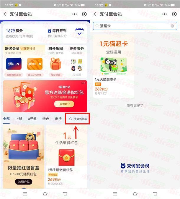 支付宝会员中心269个积分兑换1元天猫超市卡 亲测秒到账