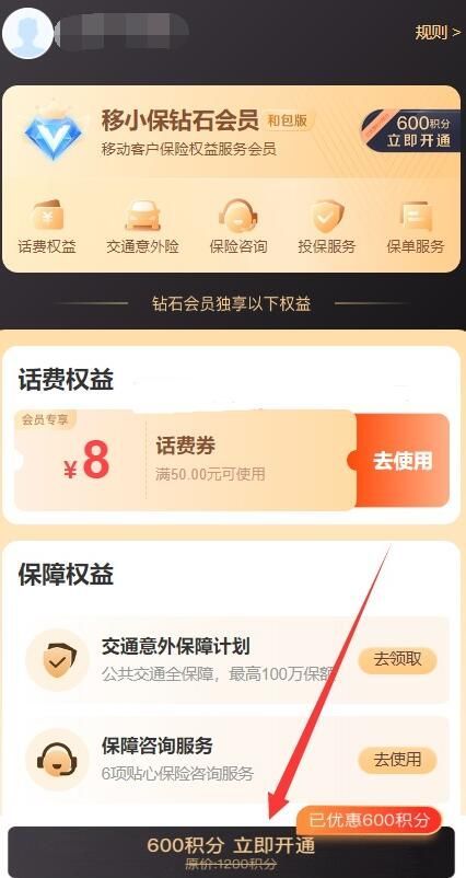 移动用户秒领600和包积分 可兑支付宝云闪付红包等,打开活动登录后底部点击【600积分立即开通】(不用真开通,点一下)就会获得600积分,积分在和包APP可以兑换红包那些。