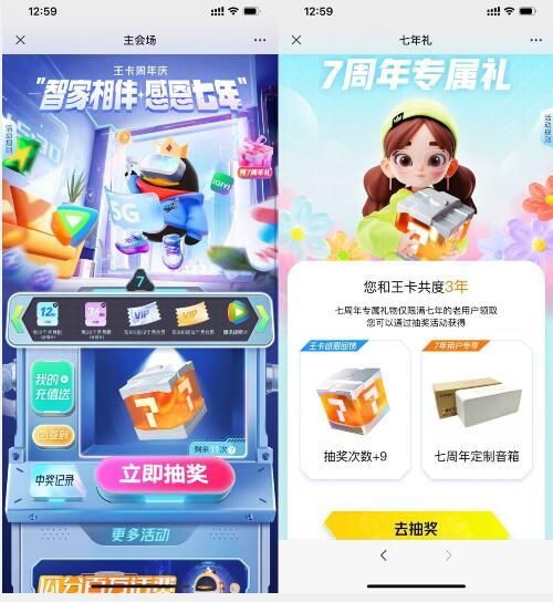 【腾讯王卡用户专属福利】:每日抽取视频/音乐会员或实物奖励。仅限腾讯王卡用户。使用微信打开链接,每天获取一次抽奖机会。注:7年会员可直接领音箱