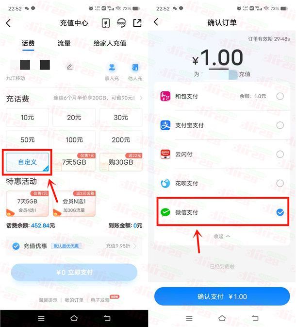 中国移动充1元话费领取450个和包积分 每月可参加一次