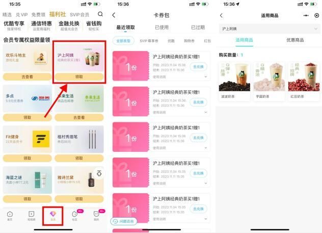 【优酷会员领沪上阿姨买1送1券】新一期!优酷APP->底部“会员”->顶部“福利社”->下拉找到沪上阿姨->可无限领取,复制兑换码到沪上阿姨小程序兑换即可