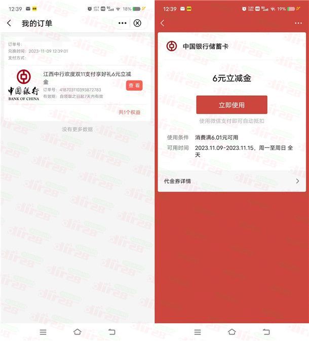江西中国银行的一个粗暴给力活动,参加中国银行举办的双11消费支付中行送福利活动,通过打开中国银行APP进去活动里,在活动里可以直接领取到6元微信立减金,领到的微信立减金秒到,可以在微信支付的时候选择中国银行卡就可以抵扣,也可以变现。