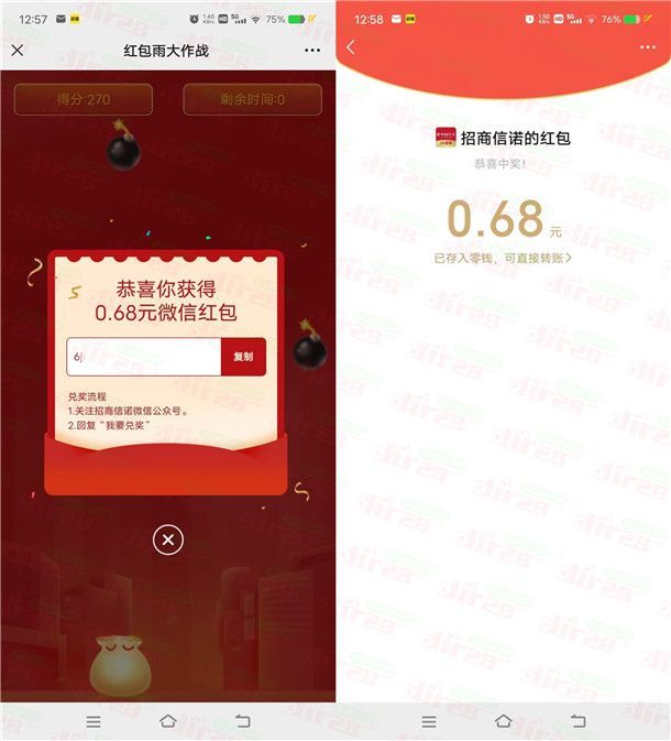 招商信诺双11红包雨大作战抽微信红包 亲测中0.68元