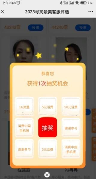 移动客服评选投票抽5-50元话费 亲测5元话费,微信打开活动任意投票后点抽奖,基本上都是5元。
