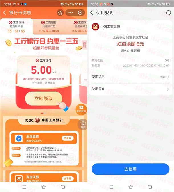 小编提示:打开支付宝APP扫码进去领5元工商银行红包,有的是满5.01元用,有的是满500元用,数量限量