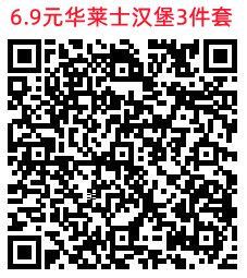 小编提示:微信扫描下面二维码或者复制下面文字到微信点开进去,可以6.9元购买华莱士全鸡汉堡3件套、或塔斯汀汉堡2件套,全国门店都可以用,到店核销就行