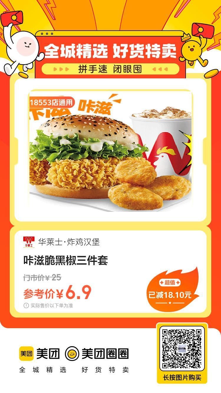 美团6.9元购华莱士汉堡3件套和塔斯汀汉堡2件套,最近准备吃的可以囤一个。