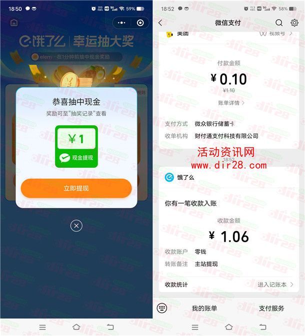饿了么微信小程序抽最高15元微信红包 亲测中1元 金额随机