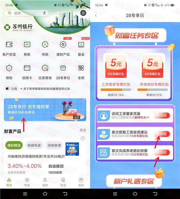 粗暴 苏州银行28专享日领取5-10元微信红包 亲测推零钱