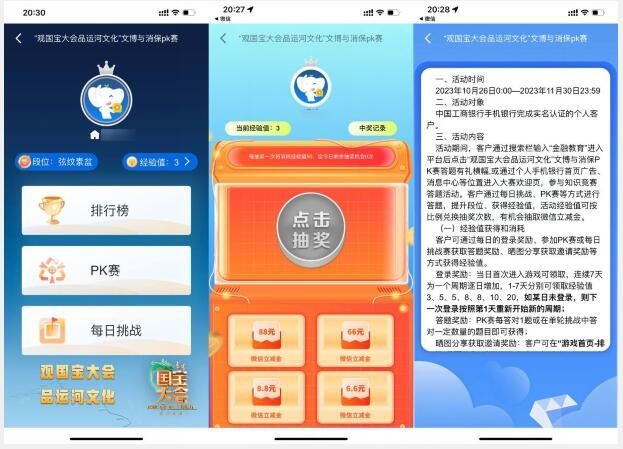 【工商银行知识PK集经验抽取立减金】活动详情如下: