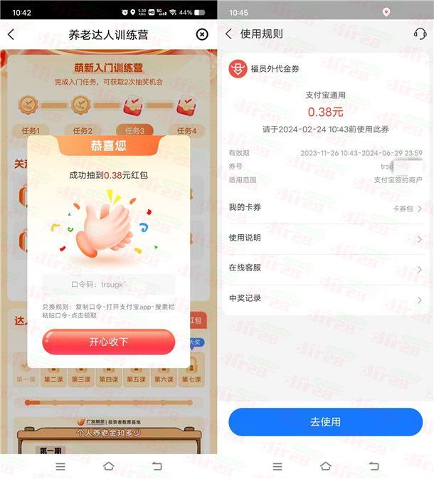 中信银行养老达人训练营抽0.18-88元支付宝红包 亲测中0.38元