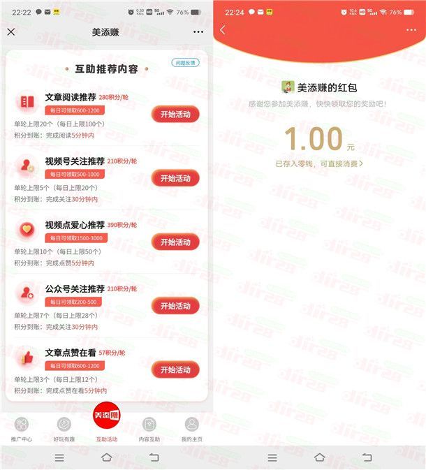 美添赚微信浏览关注领取微信红包 满1元提现亲测秒推