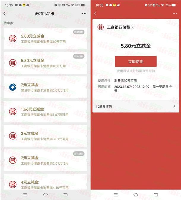 工银深圳花花耶限定冬日礼抽1.8-88元微信立减金 亲测中11.6元