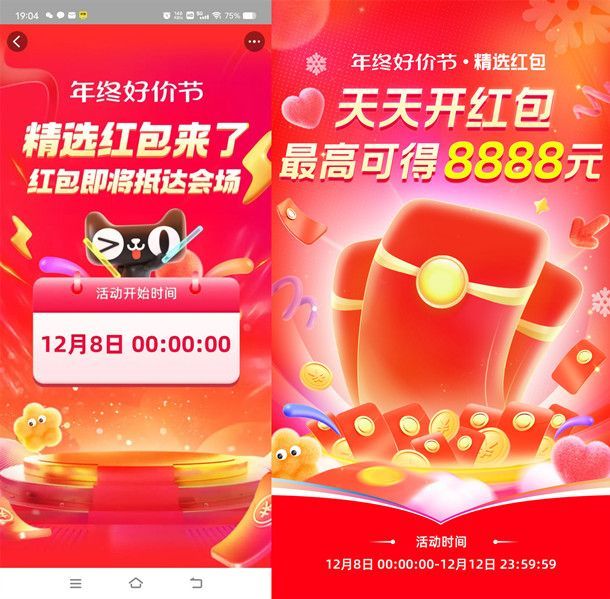淘宝年终好价节超级红包 必中最高8888元现金红包 今晚0点开始