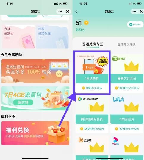 【联通超燃汇签到0.5充1元话费】每天均可参与!微信进入小程序“超燃汇”->签到一下得10积分->下拉点“福利兑换”使用10积分+0.5亓兑换1元联通话费