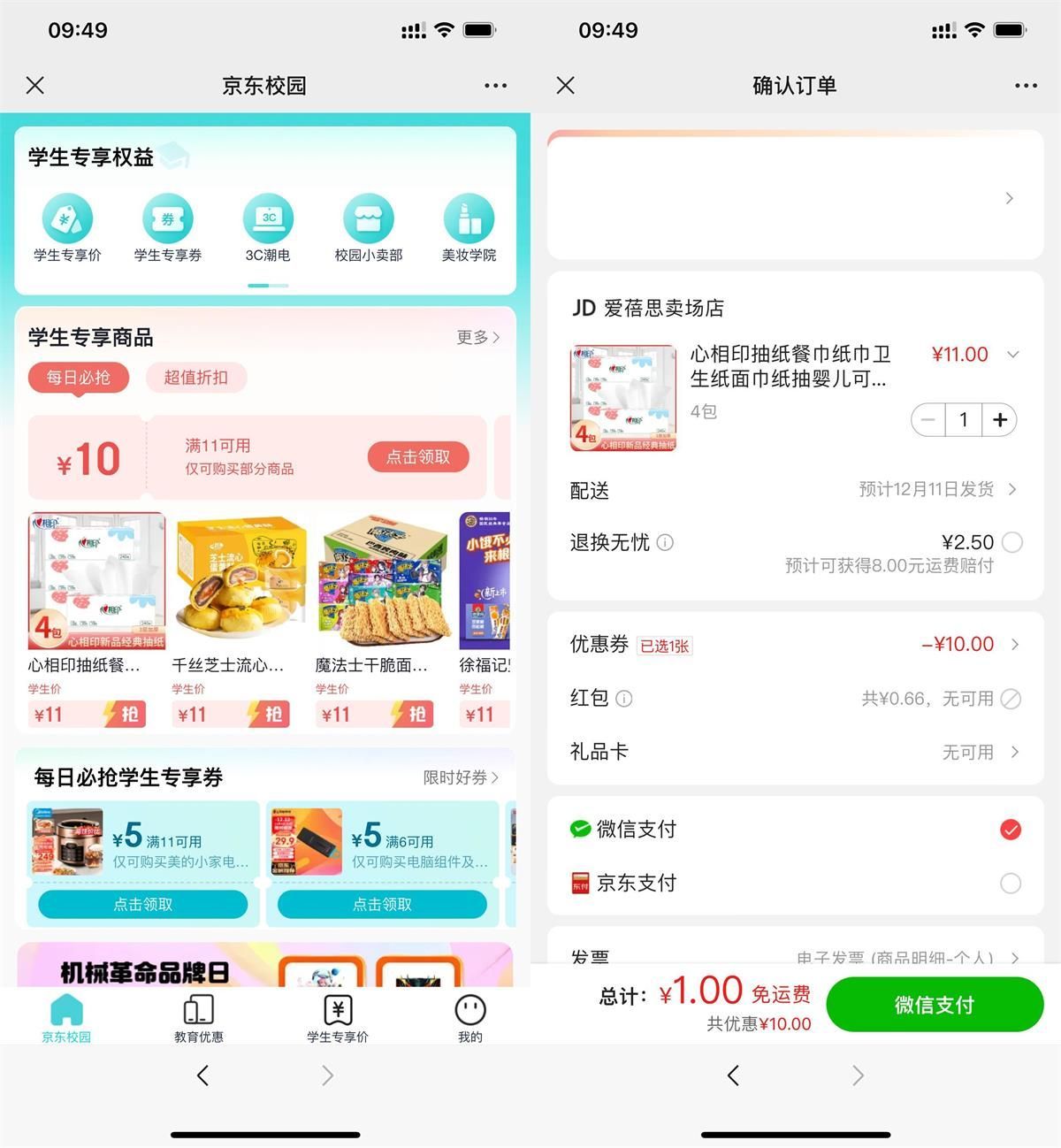 打开活动地址->领11减10亓券->页面挺多券后1亓包邮的实物